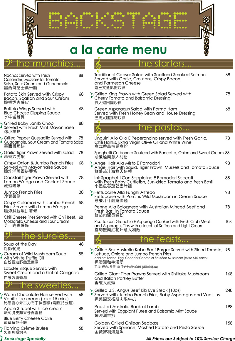 In some establishments, a few items such as steaks may be ordered